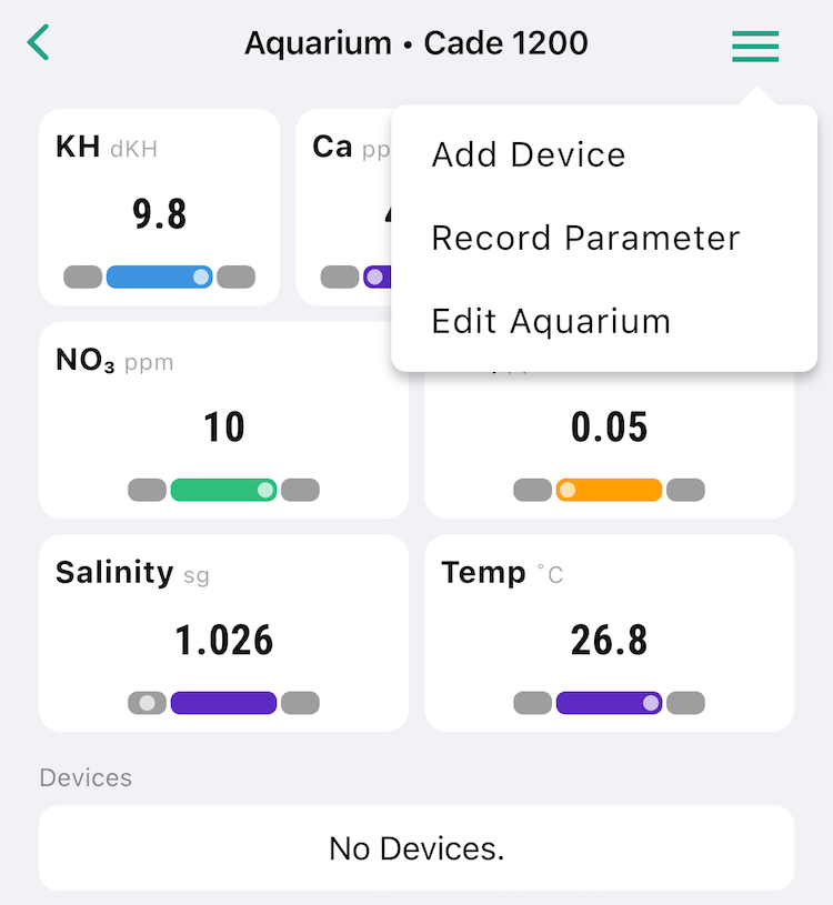 - Tap the aquarium you would like to add Kalkalator to, and select "Add Device" from the menu on the top right.
