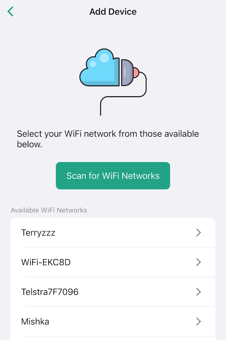 - Once paired, Kalkalator will scan for WiFi networks nearby. Only 2.4Ghz networks are compatible, and older security schemes are not supported (eg WEP or WPA1). Choose the network you want Kalakator to connect to, and enter the password.